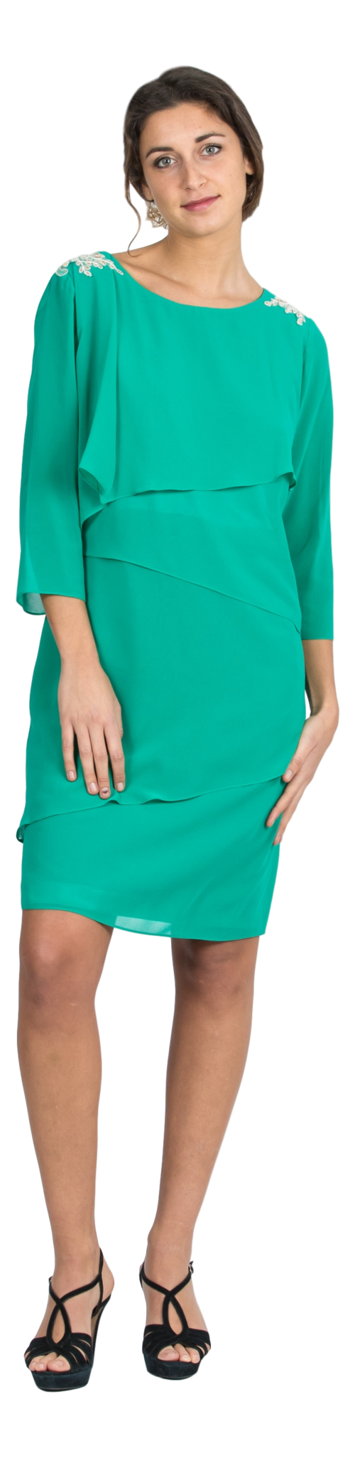 he acompañado a mi madre a su local del centro y muy bien, tienen variedad y te atienden amablemente, hoy tenían mucha gente y las chicas iban corriendo de un lado a otro pero aún así nos han atendido bien y una vez que hemos pasado a sus cambiadores mi mami se ha podido probar lo menos una decena de vestidos diferente en su estilo. Al final hemos comprado este porque le gusta mucho el verde y lleva la manga que ella buscaba y luego nos ha parecido que es ponible para otras ocasiones y no solo para el bautizo de mi bb.