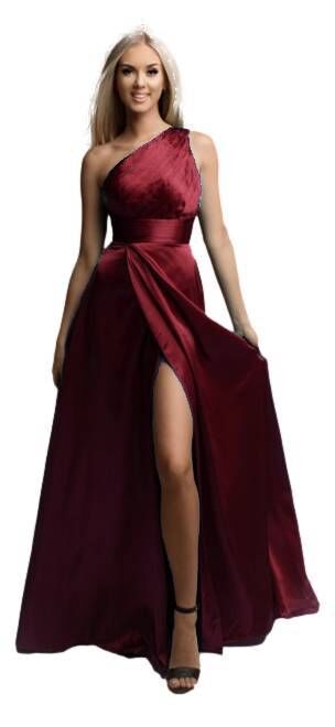 Modelo confeccionado en fino raso, diseñado con cuerpo asimétrico de un solo hombro y suavemente drapeado en frontal (espalda lisa).