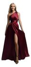 Elegante vestido largo asimétrico en raso con abertura en falda.