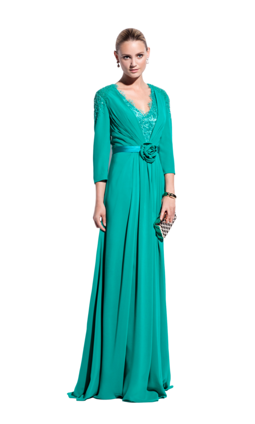 Elegante vestido largo en gasa con manga by Costura Europea.
